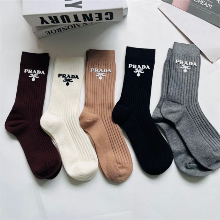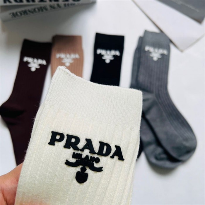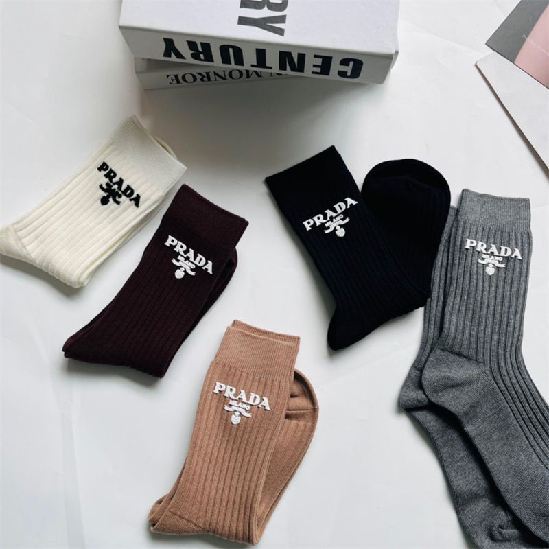 Prada プラダレディース向け 靴下 かわいいブランド ストッキング 大人気コットン 靴下 メンズ 通気性ブランドソックス 男女兼用 ファッション
