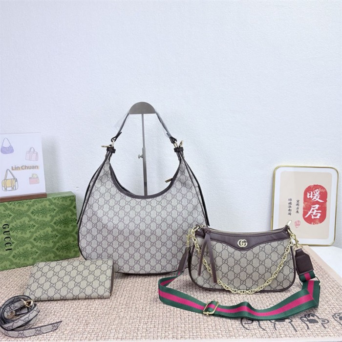 Gucci グッチハイブランド三日月バ型ッグ肩掛けバッグ 3点セット ブランド男女兼用レディースショルダーバッグブランドカジュアルブランドミニバッグコーデ