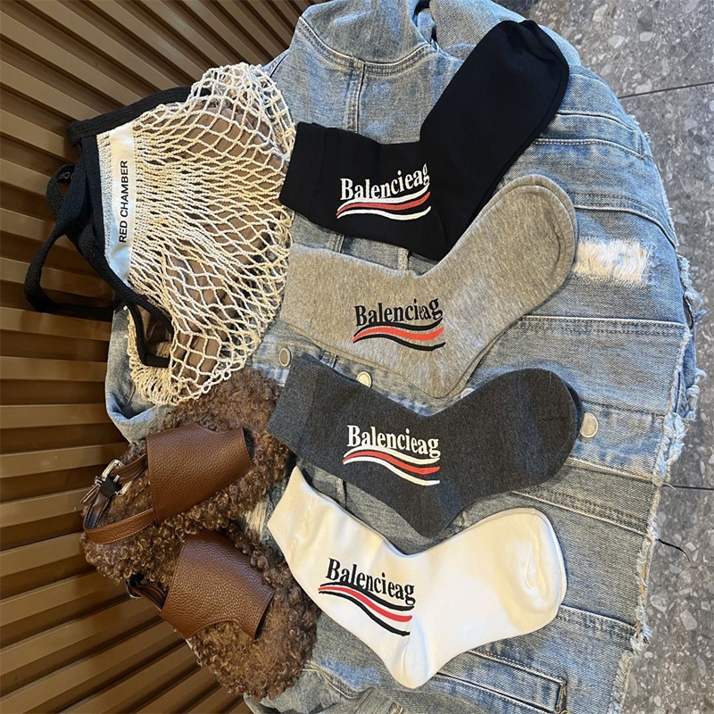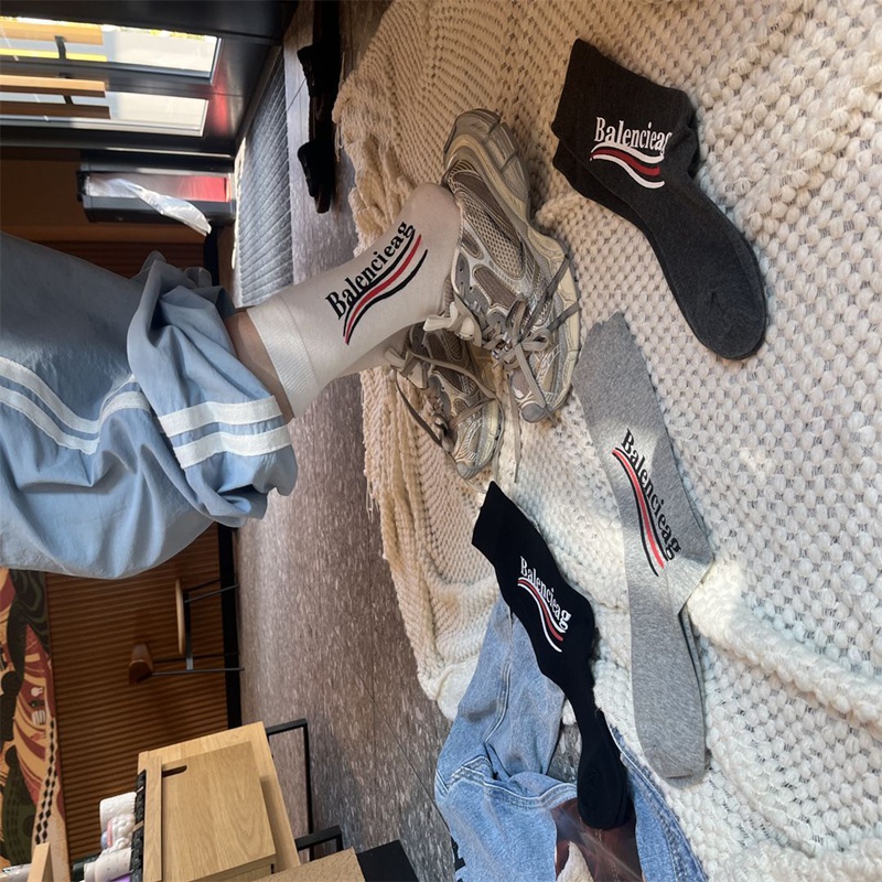 Balenciaga バレンシアガレディース向け 靴下 かわいいコットン 靴下 メンズ 通気性ブランドミドルソックス 高品質ブランドソックス 男女兼用 ファッション