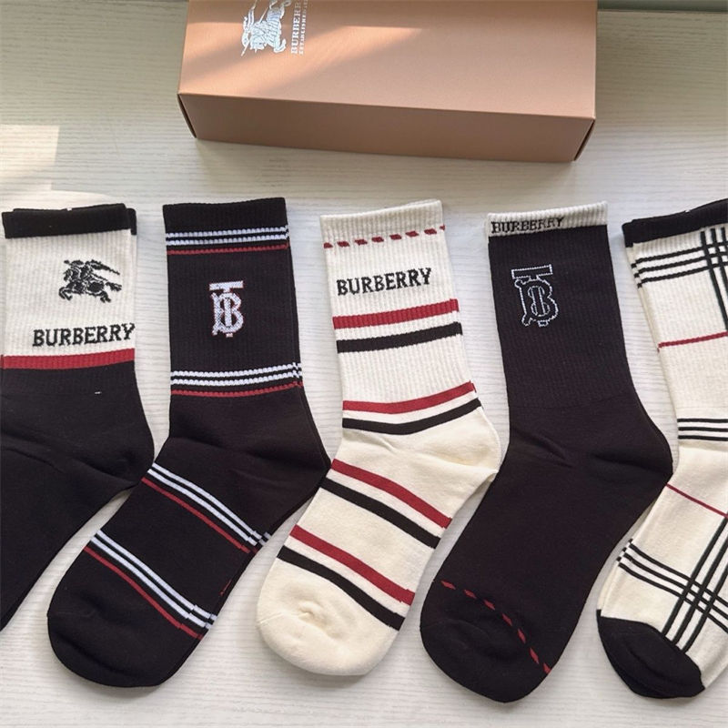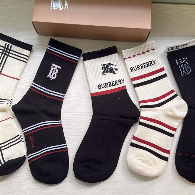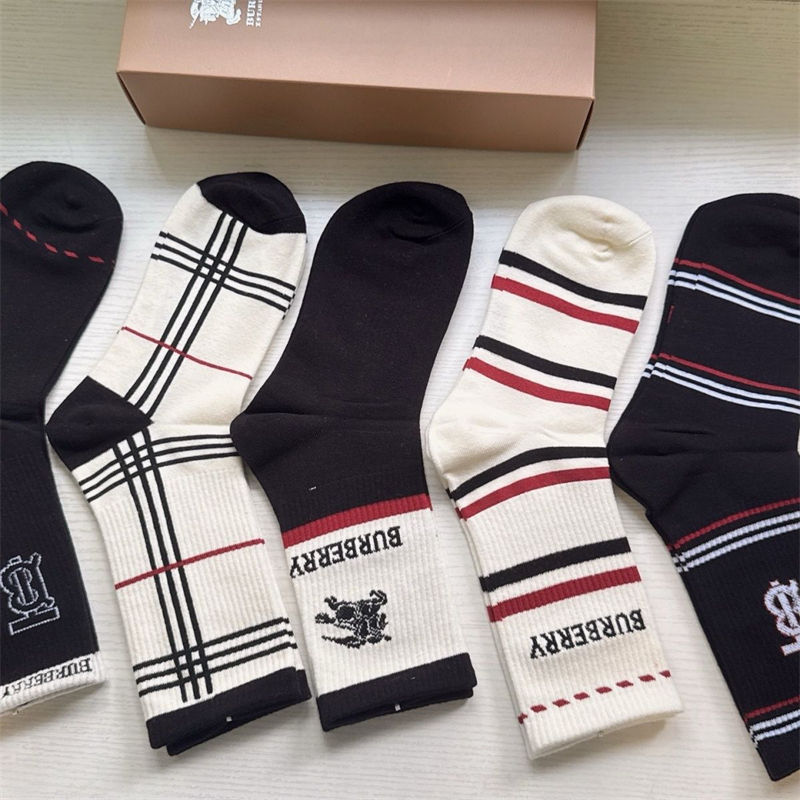 Burberry バーバリーレディース向け 靴下 かわいいブランドミドルソックス 高品質浅口ソックス 女の子好き 韓国ブランドソックス 男女兼用 ファッション
