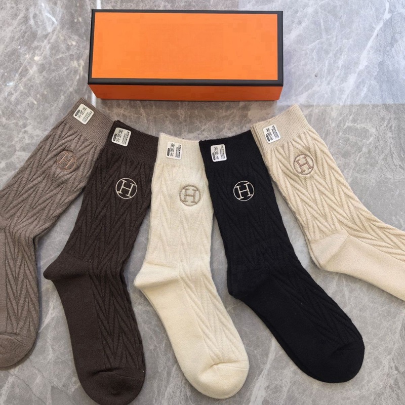 Hermes エルメスブランド ハイソックス 大人気コットン 靴下 メンズ 通気性 厚手ソックス 女の子好き 韓国ブランドソックス 男女兼用 ファッション