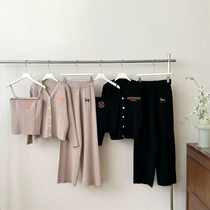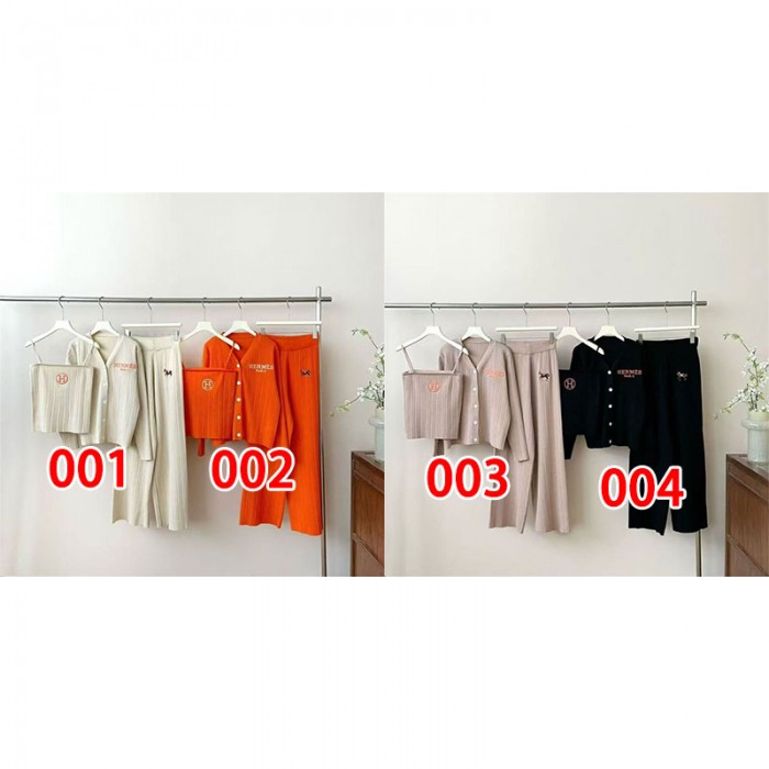 Hermes エルメスハイブランドセットアップ レディースニット 3点セット S - 2XL セーター カーディガン キャミソール ワイドパンツ 上下セット 長袖 ニット 刺繍 シンプル おしゃれ カジュアル 秋 冬
