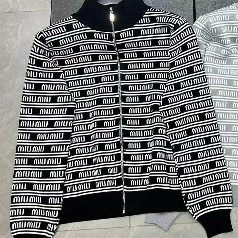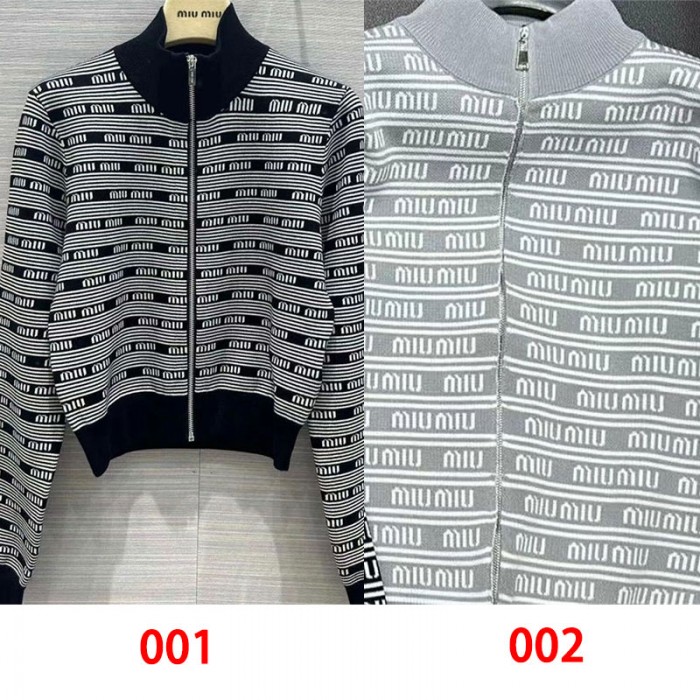 ミュウミュウ MiuMiuハイブランドカーディガン レディース 長袖 ニット セーター トップス アウター カットソー S - 2XL 前開き ダブルジップ ゆったり 体型カバー カジュアル シンプル 可愛い 通勤 春 秋 冬