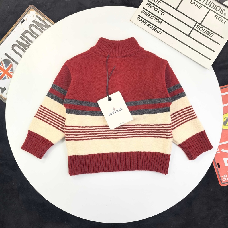 Moncler モンクレールブランドニットボーイズ セーター ハーフジップ プルオーバー 柔らかい 100% コットン ケーブルニット セーター カジュアル 長袖 タートルネック 子供用 90¬150cm