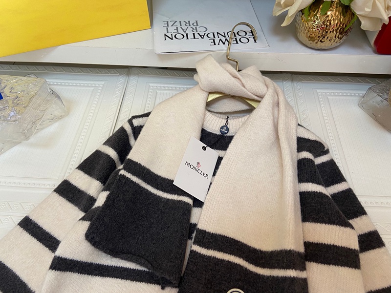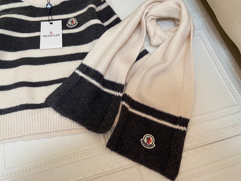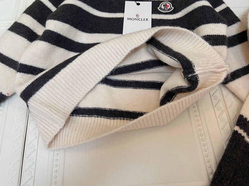Moncler モンクレールブランド キッズ ニットセーター マフラー 2点セット 男の子 女の子 クルーネック 長袖ニット 丸首トップス 110~150cm 春秋冬 ストライプ シンプル 子供服 通学 ボーイズ ガールズ 下着 インナー 防寒