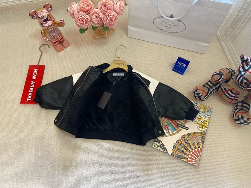 商品名:プラダキッズ皮革アウター Prada ボーイズ PU革ジャケット 裏起毛 秋冬 お出かけ 長袖 レザー コート バイク服 キッズ ヒップホップ かっこいい ガールズ 男の子