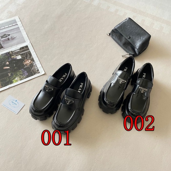 商品名称:プラダレディース ローファーPrada PU革シューズ 太めヒール 厚底 身長アップ 美脚 通勤 通学 歩きやすい 革靴