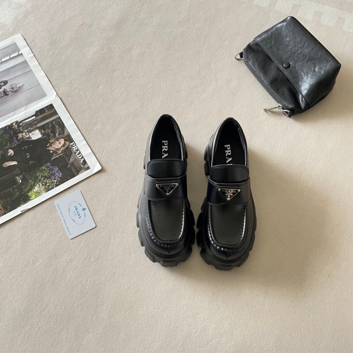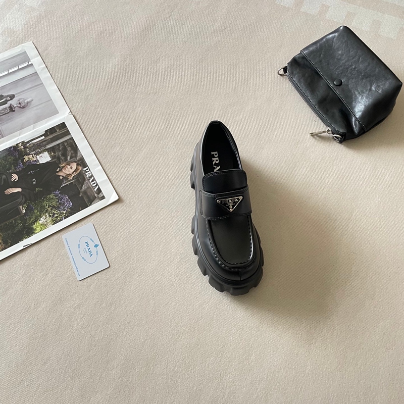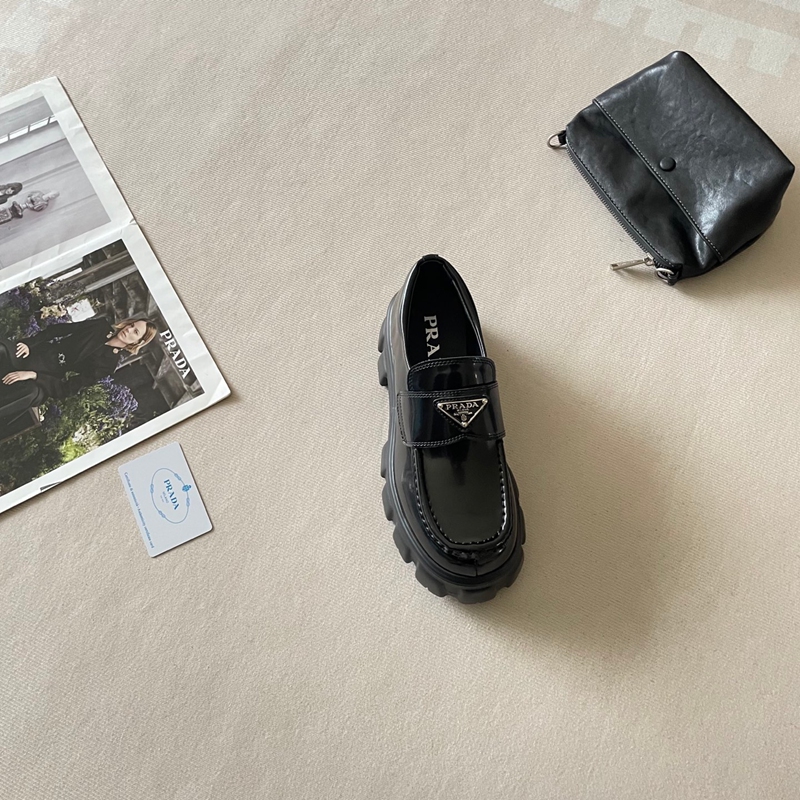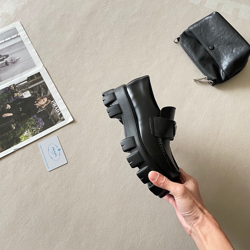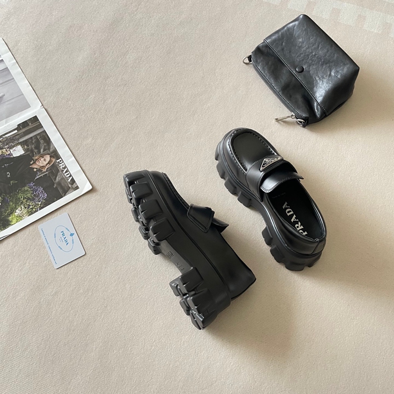 Prada プラダハイブランドローファー 厚底 レディース ビットローファー 歩きやすい ソール ヒール パンプス 通勤 通学 学生 マニッシュ かわいい カジュアル ブラック 225¬255mm
