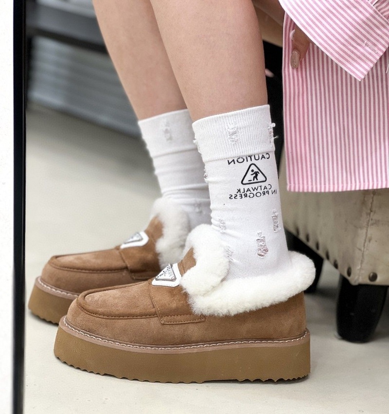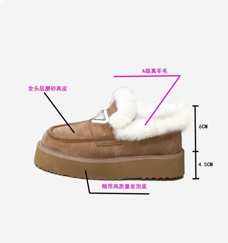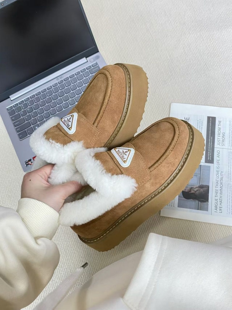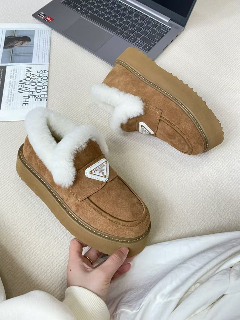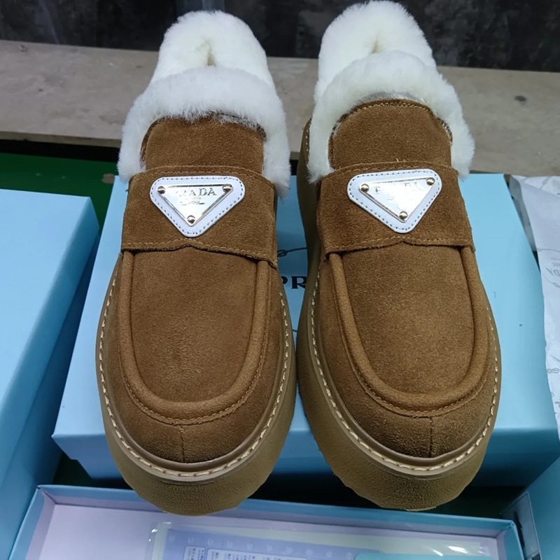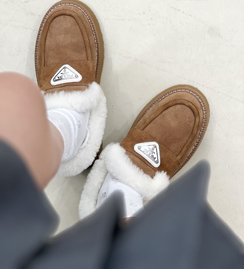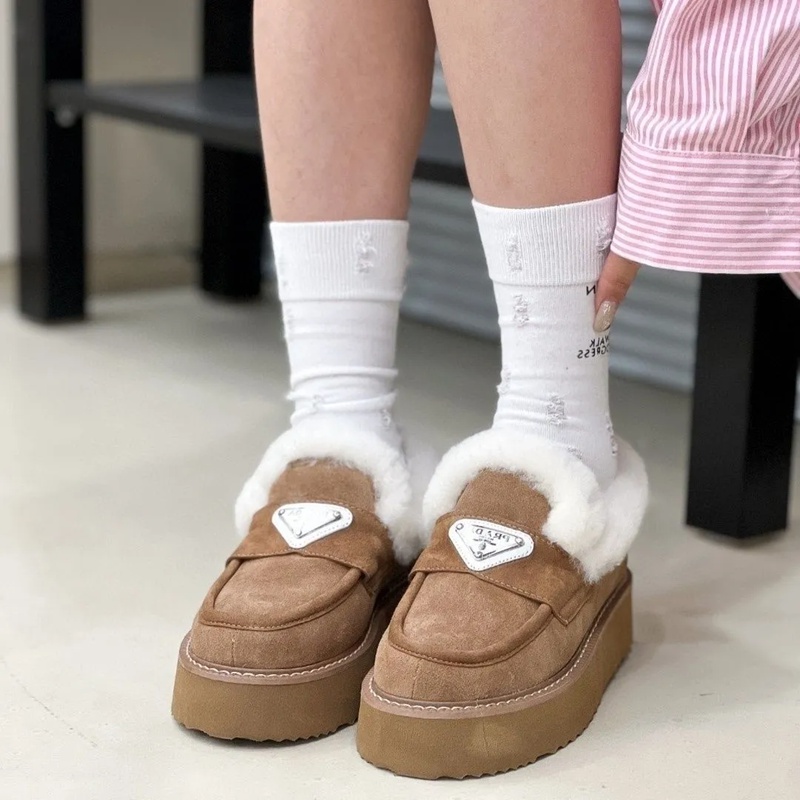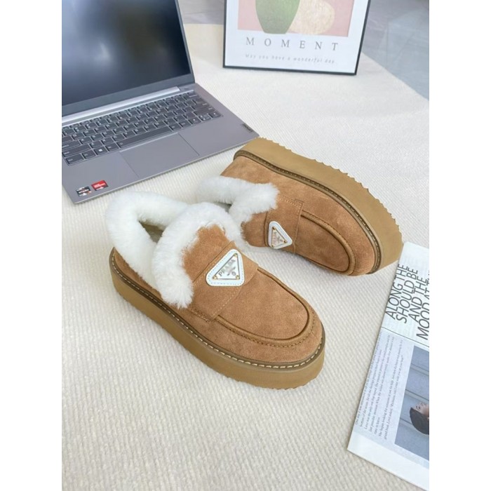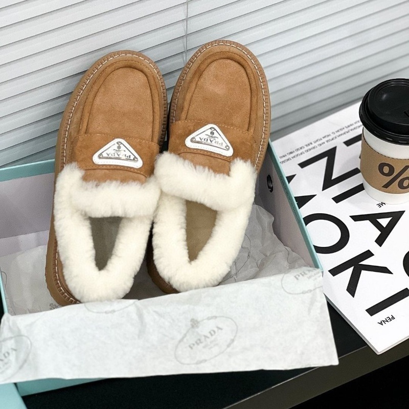 Prada プラダブランドモカシン レディース 秋冬 ローヒール スリッポンローファー 軽量 ボア もこもこ 暖かい カジュアル ファー デッキ シューズ 防寒 保温 冷え対策 滑り止め 歩きやすい ふわふわ 通勤通学 225¬250cm 婦人靴