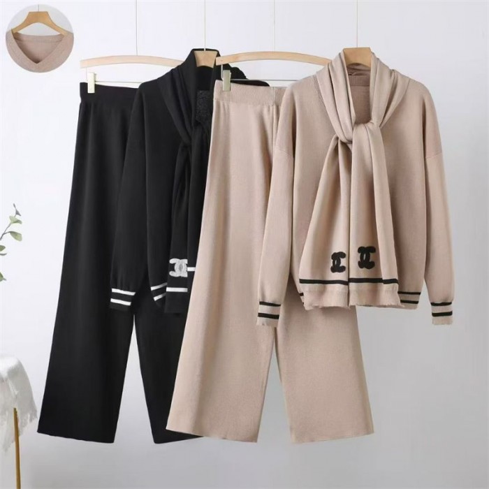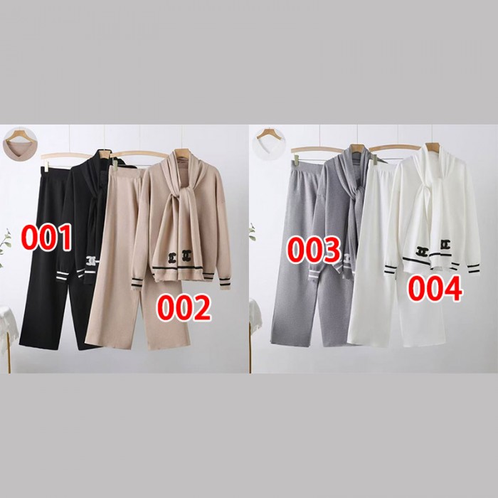 Chanel シャネルハイブランド ニット ワイドパンツ レディース セットアップ 気質 パンツスーツ 同窓会 服装 ツーピース フォーマル 上下 二点セット 秋 冬 エレガント
