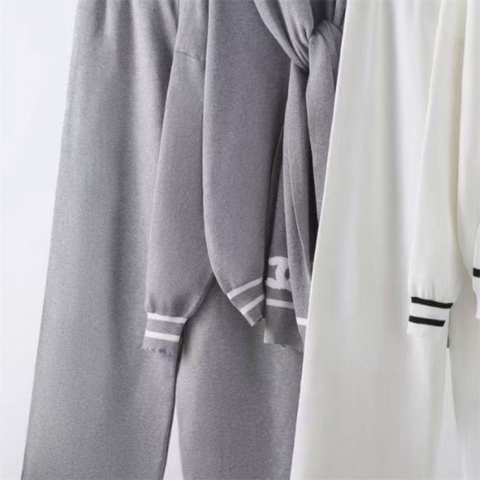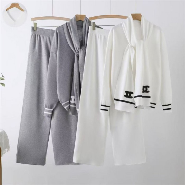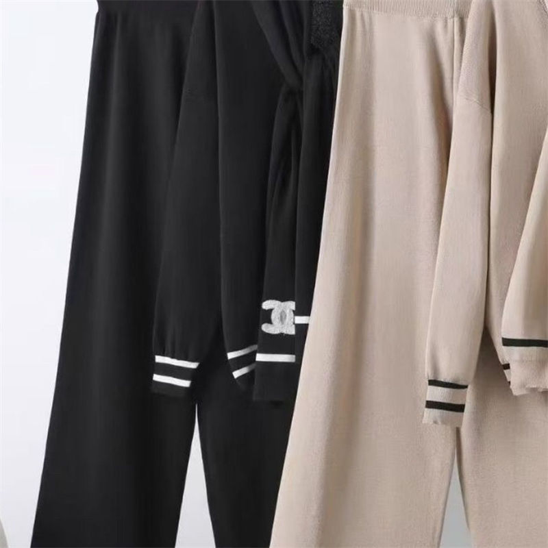 商品名:シャネルレディース ニット 2点セット セットアップ Chanel 上下セット ニットセーター ニットトップス ワイドパンツ バイカラー パンツスーツ ファッション カジュアル 可愛い レトロ 通勤 通学 秋冬
