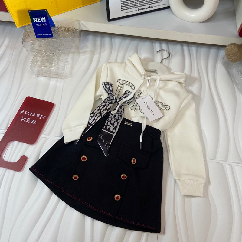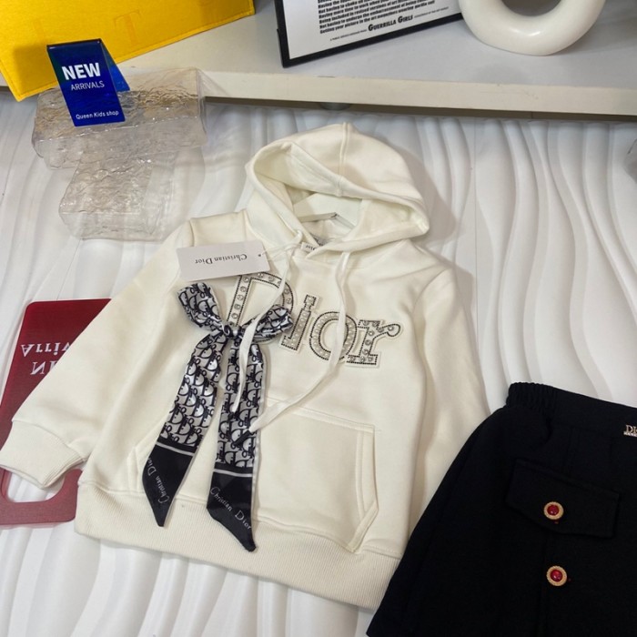 Dior ディオールハイブランド子供セットアップ 女の子 ガールズ 上下セット 長袖パーカー 裏起毛スカート 可愛い かわいい服 韓国風 110¬160CM 子供 キッズ 学生服 小学生 中学生 2点 秋服 春秋冬 トレーナー スウェット カジュアル 普段着 通学