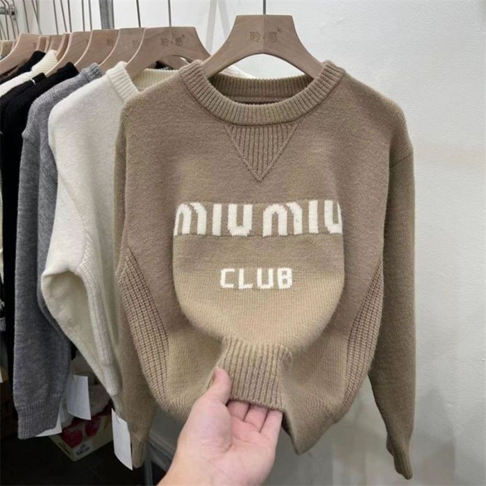 ミュウミュウ MiuMiuブランドセーター レディース ニット トップス 丸首 カットソー S - 3XL ケーブル編み プルオーバー 長袖 着痩せ ゆったり ファッション カジュアル 可愛い 伸縮性 体型カバー 通勤 着心地 韓国 着回し 柔らかい お出かけ 春 秋 冬
