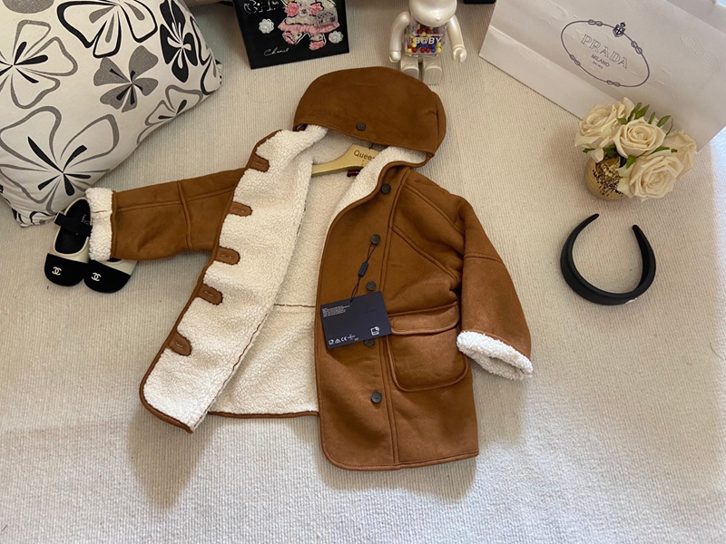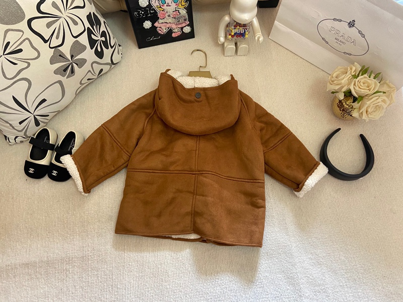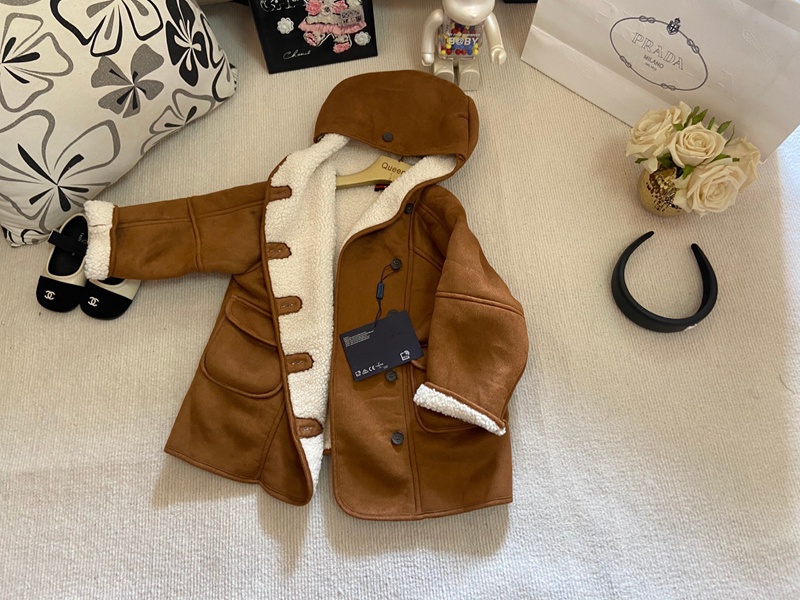 Prada プラダハイブランド子供 ボアジャケット キッズ フリースコート 女の子トレンチコート子供服 アウター フード付き 裏フリース 上着 防寒 ブルゾン ダッフルコート オーバー 保温 かわいい 無地 秋冬 90-130cm