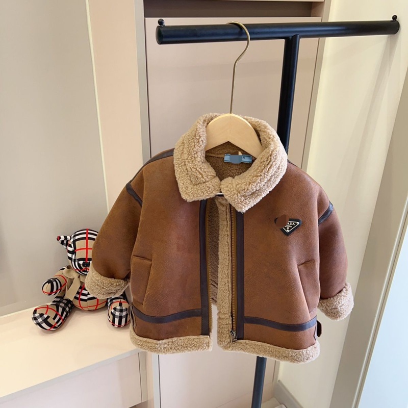 Prada プラダブランド子供レザージャケット キッズ 革ジャケット 冬ジャケット 裏ボア 子ども アウター ボイーズ 皮コート 革ジャン 防風 防寒 かっこいい 90-170cm
