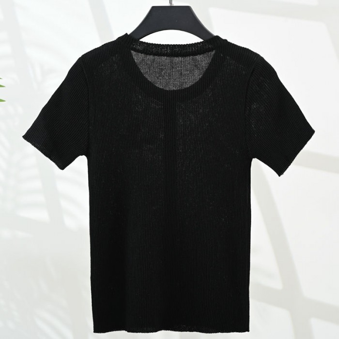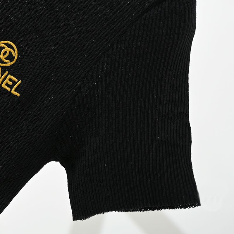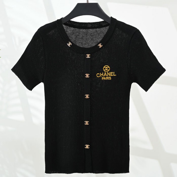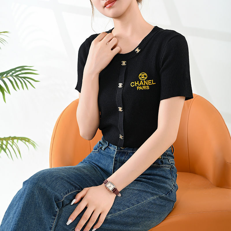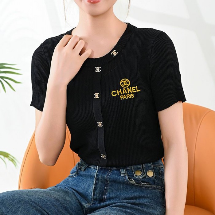 Chanel シャネルブランドニット レディース セーター 半袖 サマーニット カットソー ボタン付き 可愛い 柔か 肌触りが良い 薄手 伸縮性 刺繍 シンプル おしゃれ 着回し力 ニットソー 普段着 トップス 夏