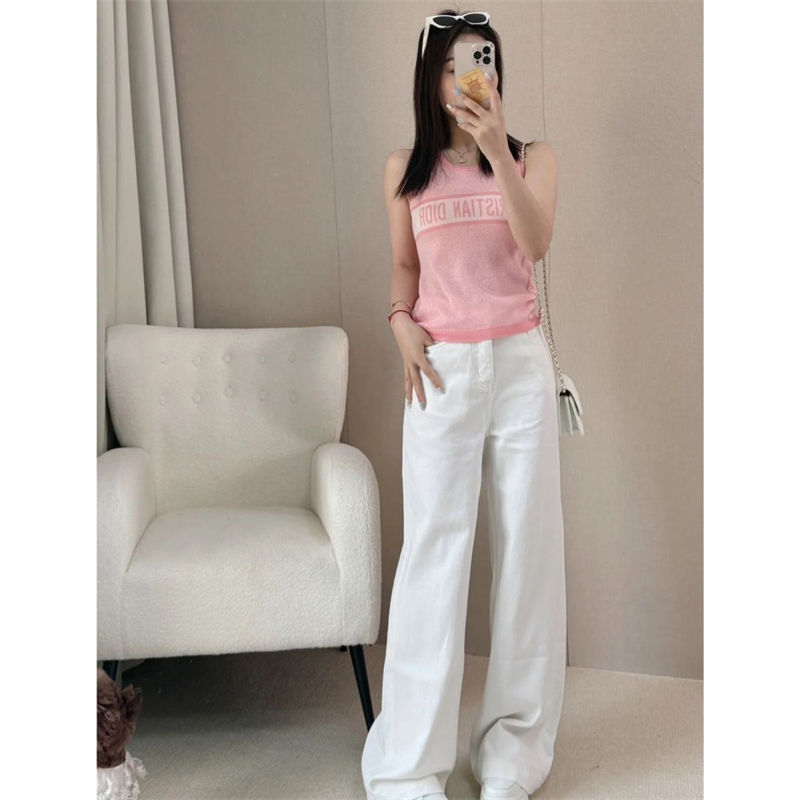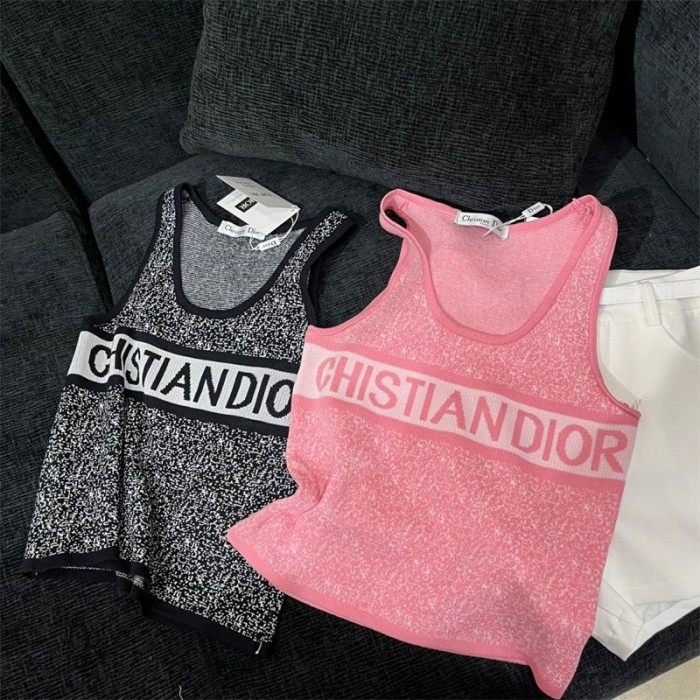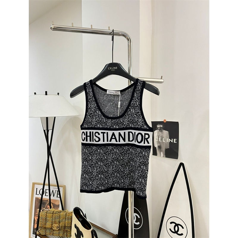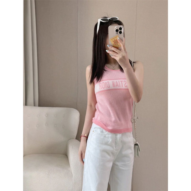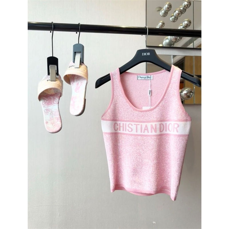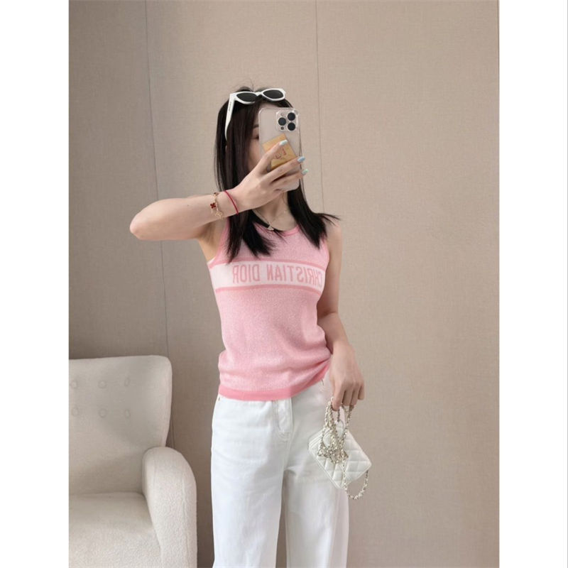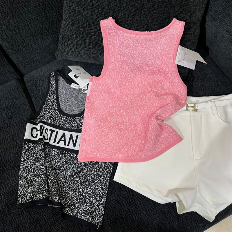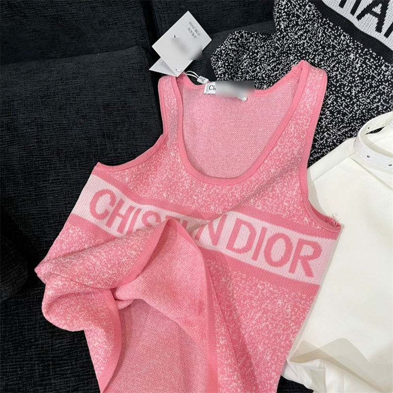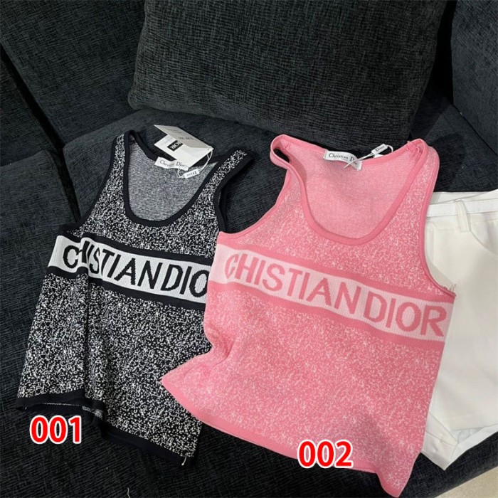 Dior ディオールブランドタンクトップ ニット レディース ショート丈 薄手 インナー ノースリーブ 重ね着 カットソー トップス リブ キャミソール 柔らかい 部屋着 春 夏 秋