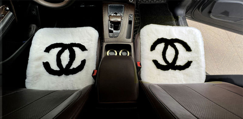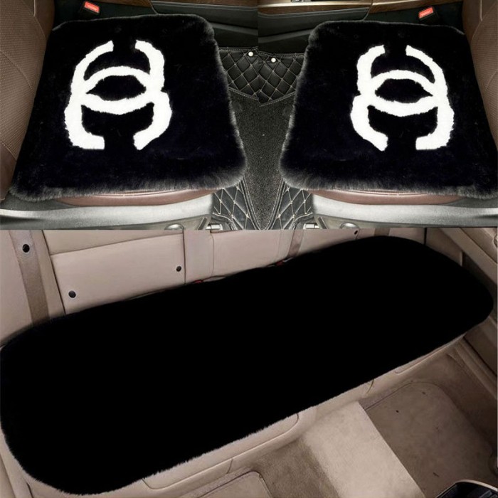 ブランドシャネル もこもこカーシートクッション 可愛い 車用 シートクッション 3点セット おしゃれ CAHANEL シートカバー 運転席 助手席 後部座席 車用アクセサリー