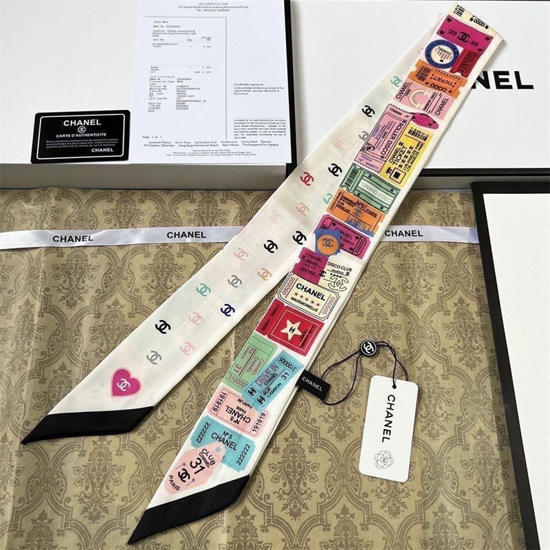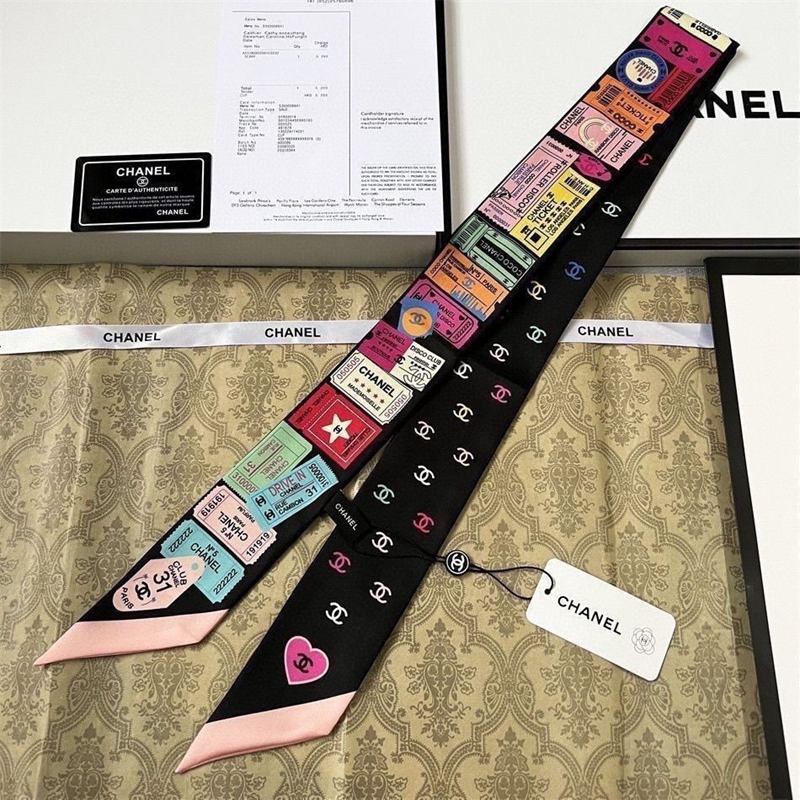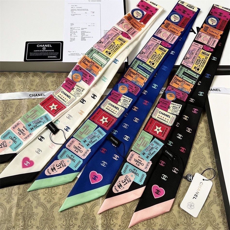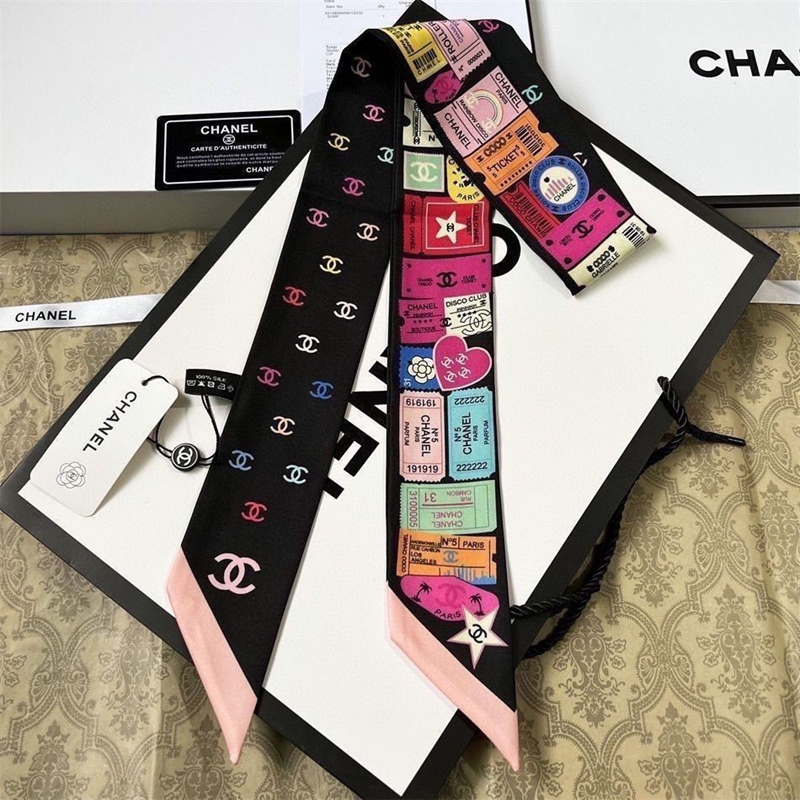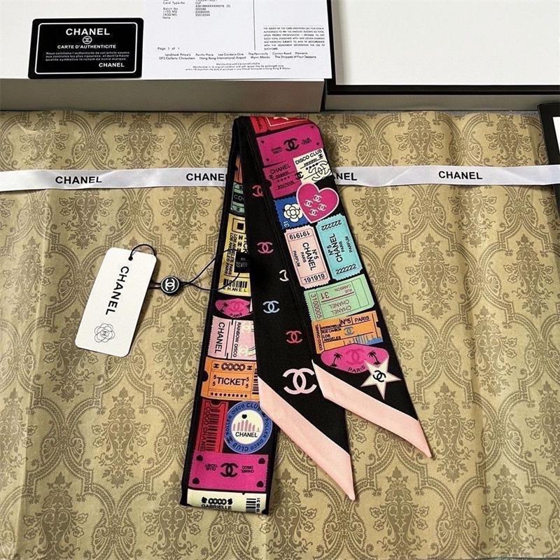 ブランドChanel バッグ用スカーフ シルクサテン調 細長い形 110×7cm 多機能 シャネルネッカチーフ アクセサリー 春夏 海辺 旅行 通勤 オフィス プレゼント バッグ装飾・髪飾り・服飾り兼用