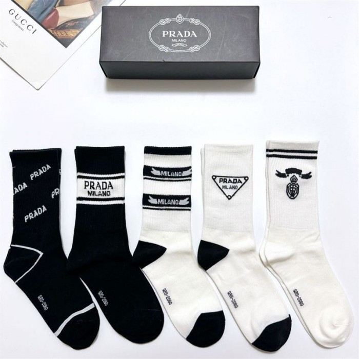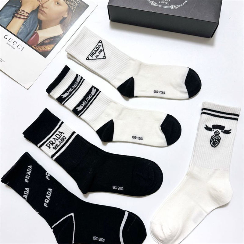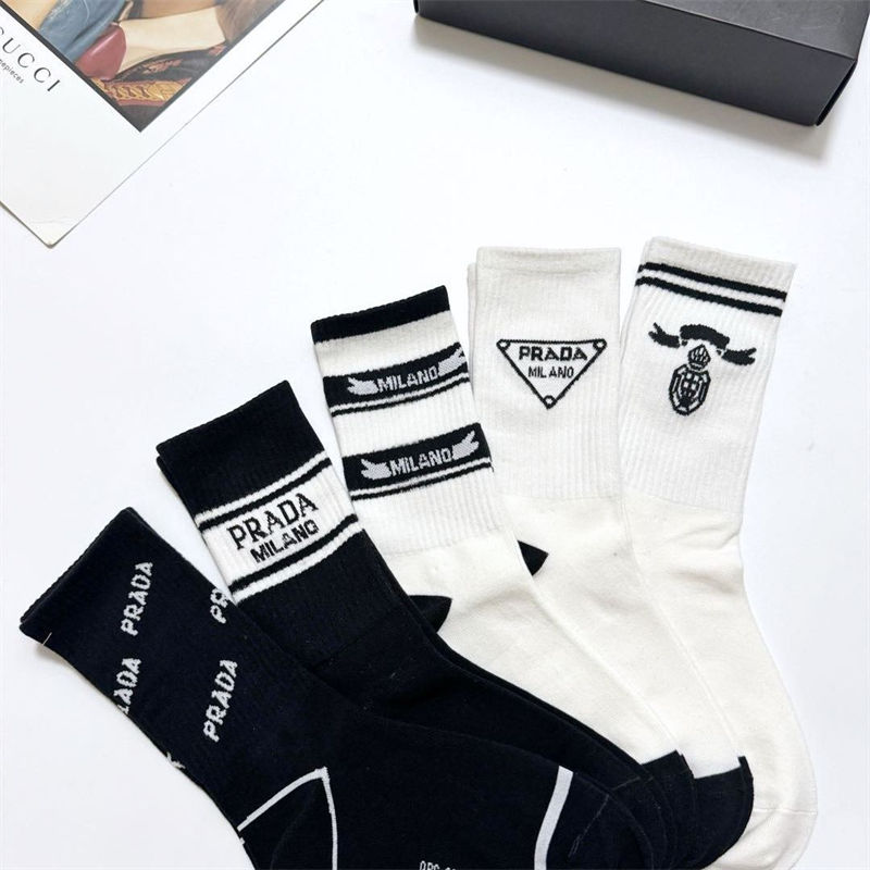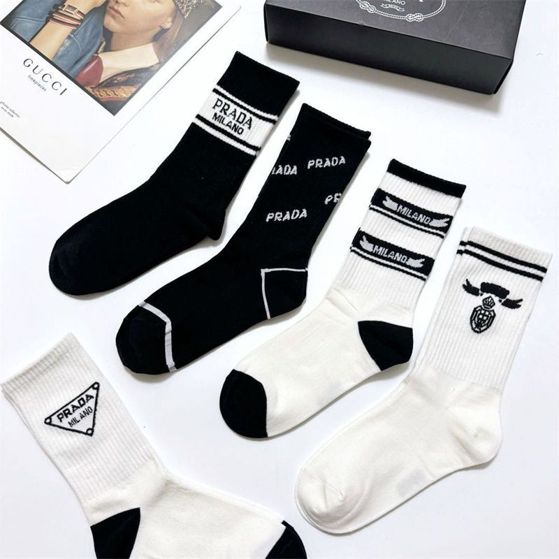 Prada プラダハイブランド ソックス 綿製レディース向け 靴下 かわいいコットン 靴下 メンズ 通気性ブランドソックス 男女兼用 ファッション
