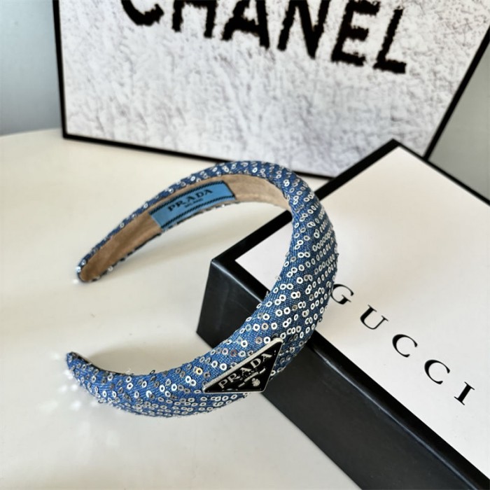Prada プラダハイブランドカチューシャ ヘアアクセサリー 髪留め ヘアバンド おしゃれ 大人 レディース 幅広 気質 シンプル 大きめ 痛くない かわいい ブルー