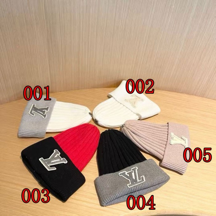 ブランドルイヴィトン リブ編み ニットキャップ ロゴ ワッペン LV ニット帽 ワッチキャップ 帽子 メンズ レディース ユニセックス アクリル ビーニー 無地 スノビーニー