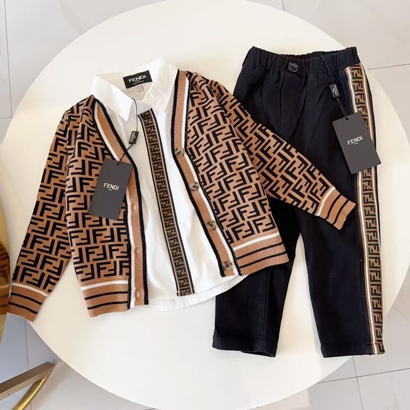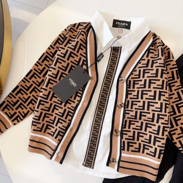 Fendi フェンディハイブランド キッズ カーディガン 男の子 女の子 綿 子供服 ニットセーター スクールセーター 長袖 前開け コート 男女兼用 無地 春秋冬 通園通学 学生 防寒 羽織 90-150cm