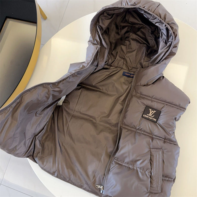 Lv ルイヴィトンブランドキッズ ダウンベスト 子供用 秋冬パーカーセットアップ 厚手 防寒 軽量 フード付きコート 上質スウェットトレーナーセットアップ90 - 160cm かっこいい 流行り