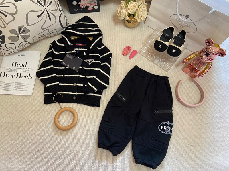 Prada プラダハイブランドニットジャージ 上下セット 子供 長袖 90-150cm ニットパーカー スウェットパンツ セーター ルームウェア 上下 セット かわいい 大きいサイズ おしゃれ 可愛い 部屋着 オシャレ 春秋 冬