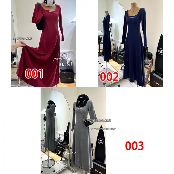 ミュウミュウ MiuMiuハイブランドロングワンピース レディース ワンピース ロング Tシャツワンピ 春秋 着痩せ 長袖 おしゃれ タイト 気質 大人 カジュアル シンプル 楽ちん 着回し おしゃれ お出かけ 通勤
