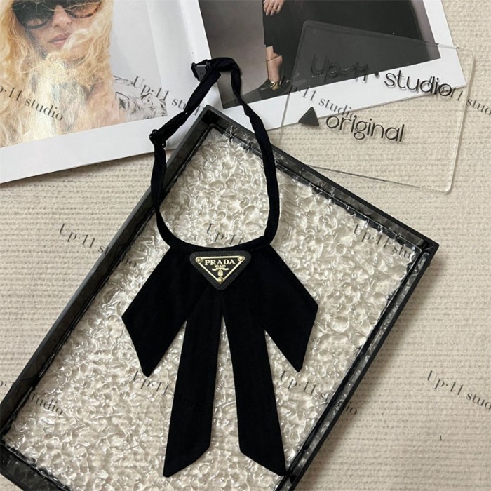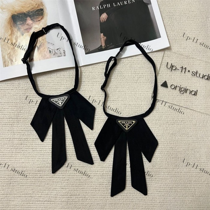 プラダブランドスクールリボン クロスタイ Prada リボンタイ 蝶結び 無地 アクセサリー 男女兼用 結婚式 オフィス 披露宴 パーティー 首周りサイズ調整可能