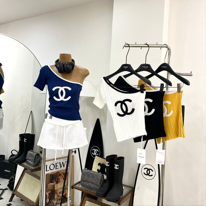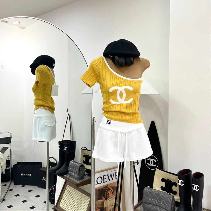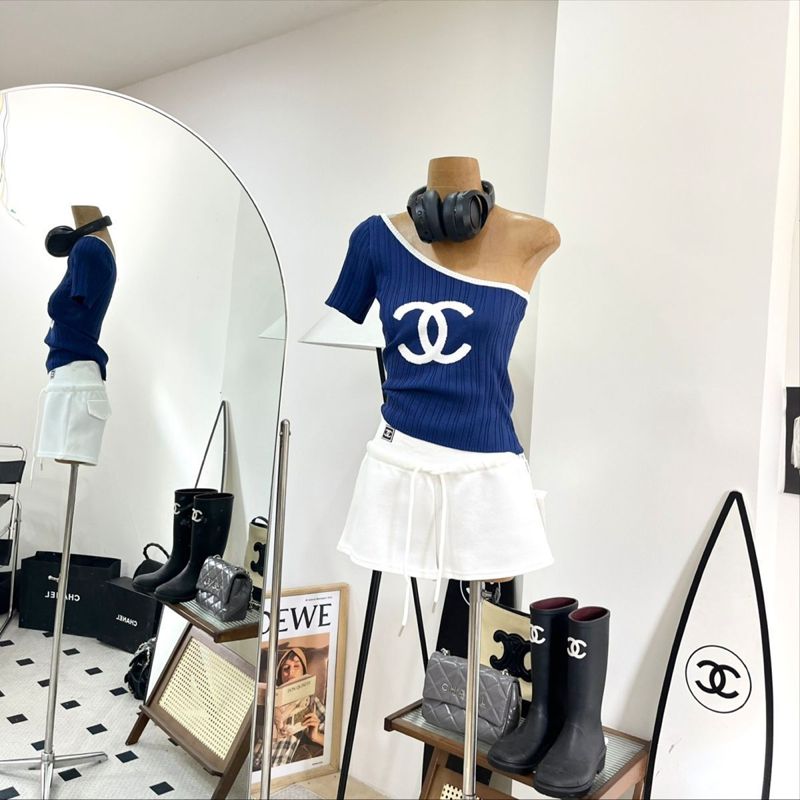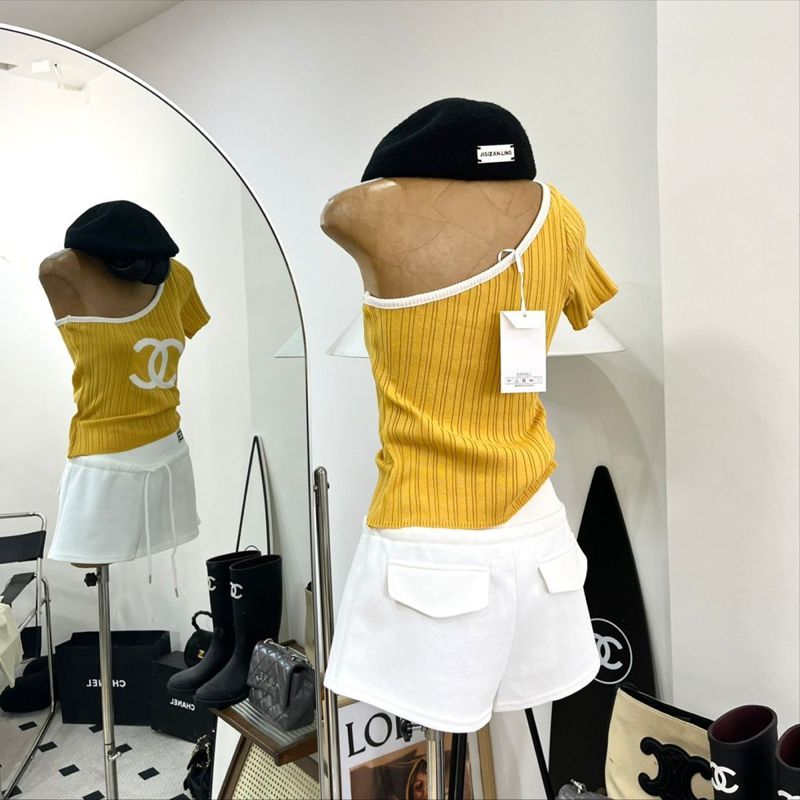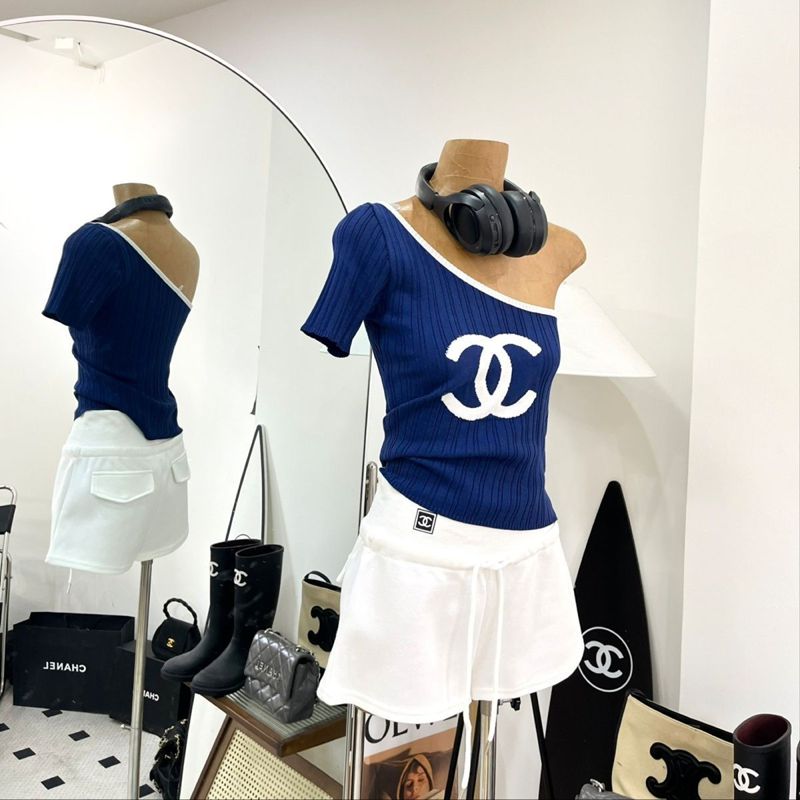商品名:シャネル半袖tシャツレディース おしゃれ Chanel夏ワンショルダーバックレス ニットシャツ